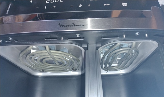Terminé le fastidieux nettoyage du four ! Voici la présentation du Dual Air Fryer de chez Moulinex. Le four traditionnel sera réservé au pain, pâtisseries quiches, gratins et pizzas, et, de ce fait restera toujours propre car exempt de graisse. Cette friteuse à air chaud permet grâce à ses deux compartiments totalement indépendants, de par exemple, rôtir un poulet et de cuire des frites ou autres légumes avec peu ou pas d'huile pour une nutrition plus saine.
