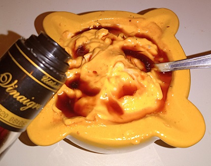 L'aïoli réservé. Ajouter du jus de citron. Le safran sur le jus de citron. Un peu de vinaigre de vin.