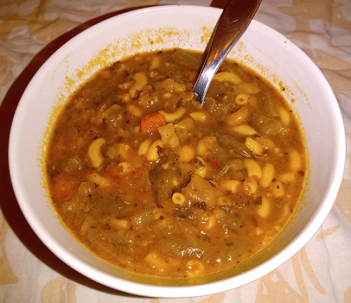 Nous profiterons de quelques légumes en trop, ( courgette, poivron, céleri et fenouil) pour préparer une Soupe du Soleil. Cette soupe pleine de soleil comme son nom l'indique est réalisée sur une base de tourin à la tomate, enrichie de petits dés de légumes du Sud. Elle est un peu moins lourde que la soupe au Pistou et viendra comme elle, égayer quelques soirées d'hiver.