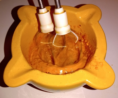 L'aïoli réservé. Ajouter du jus de citron. Le safran sur le jus de citron. Un peu de vinaigre de vin.