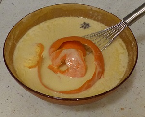 Ajouter le zeste d'orange. Piquer le zeste et mélanger. Couvrir le saladier. Placer au frais 8 à 12 h.