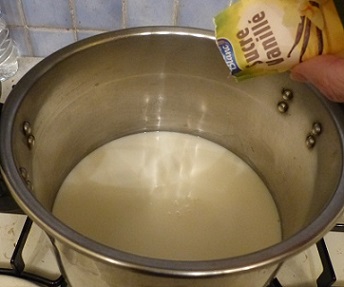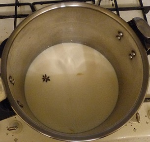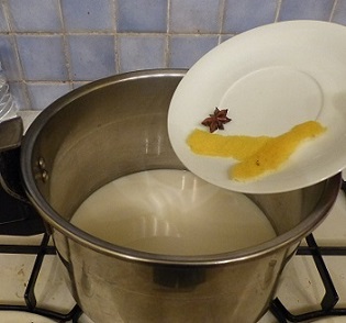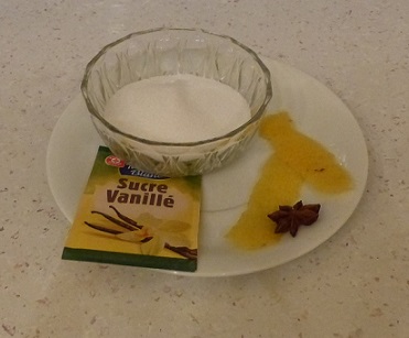 Chauffer le lait. Ajouter le sucre vanillé. Le zeste et la badiane. Laisser infuser et refroidir.