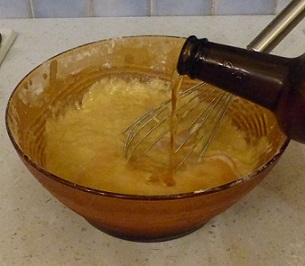 Mélanger et verser la bière. Fouetter, puis repos 10 mn. Verser le lait froid arômatisé. Placer le beurre au MO.