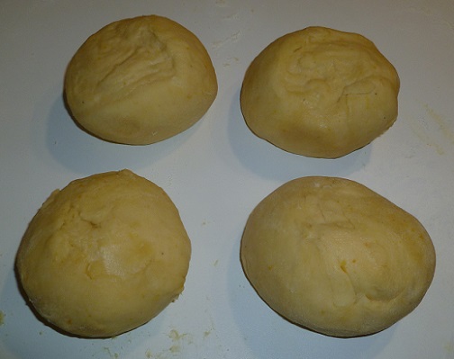 Séparer en 4 pâtons. Former les boules. Placer les boules dans un moule à cake.