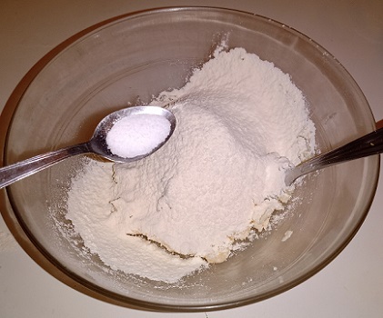 Mélanger tout doucement. Ajouter la farine tamisée. Ajouter le sel.